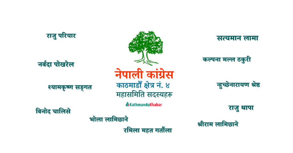 कांग्रेस महामन्त्री गगन थापाको चुनावी क्षेत्र काठमाडौँ क्षेत्र नं ४ मा महासमिति सदस्यहरूको टुंगो लागेको छ । निर्वाचन पद्धतिबाट चयन भएका महासमिति सदस्यहरुको नामावाली यसप्रकार रहेको छ: राजु परियार, कल्पना मल्ल ठकुरी, राजु थापा, भोला लामिछाने, नर्बदा पोखरेल, श्यामकृष्ण संगत, सत्यमान लामा, विनोद चालिसे, रमिला गर्तौला र श्रीराम लामिछाने ।