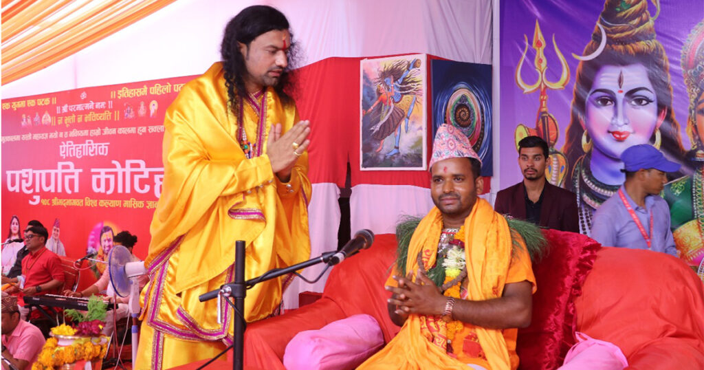 काठमाडौं । पशुपतिको कोटी होमको व्यासासनमा कृष्ण दमाईंले प्रवचन दिएका छन् । मानव सेवा फाउण्डेशनले पशुपति परिसरमा आयोजना गरेको कोटिहोम महायज्ञमा शुक्रबार आचार्य कृष्ण दमाइले प्रवचन दिए । संस्कृतमा आचार्य (स्नातकोत्तर) गरेका बैतडीका दमाइलाई महायज्ञका सङ्कल्पकर्ता बालयोगेश्वर विजय कृष्णमूर्ति महाराजले आचार्य कृष्णलाई व्यासपीठमा राखी अभिनन्दन गरेका थिए ।